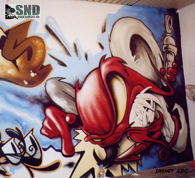 SHAME:Ben 1989´da graffitiye başladım.İlk başlarda tagging yapardım ve zannedersem Ca. 1990´dan sonra büyük şekilde duvarları boyamaya başladım,bunlar tabiki büyük duvarlardı hemde çok büyük!Benim görüşüm graffiti misyoneriyim!Bu hayatta ve böylede devam edecektir.Hiç sormadan ve bıkmadan bu kör olan dünyayi renklerimle süsleyecegim.